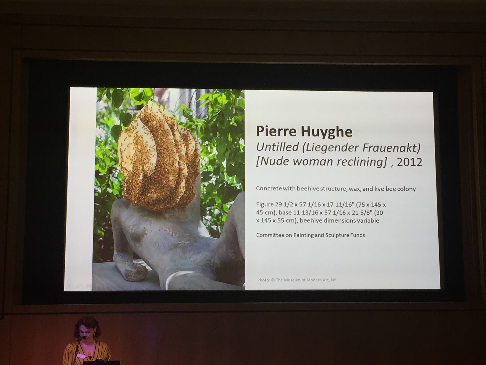 Pierre Huyghe’s Untilled (Liegender Frauenakt) had a live bee colony and wax on a concrete reclining nude.
